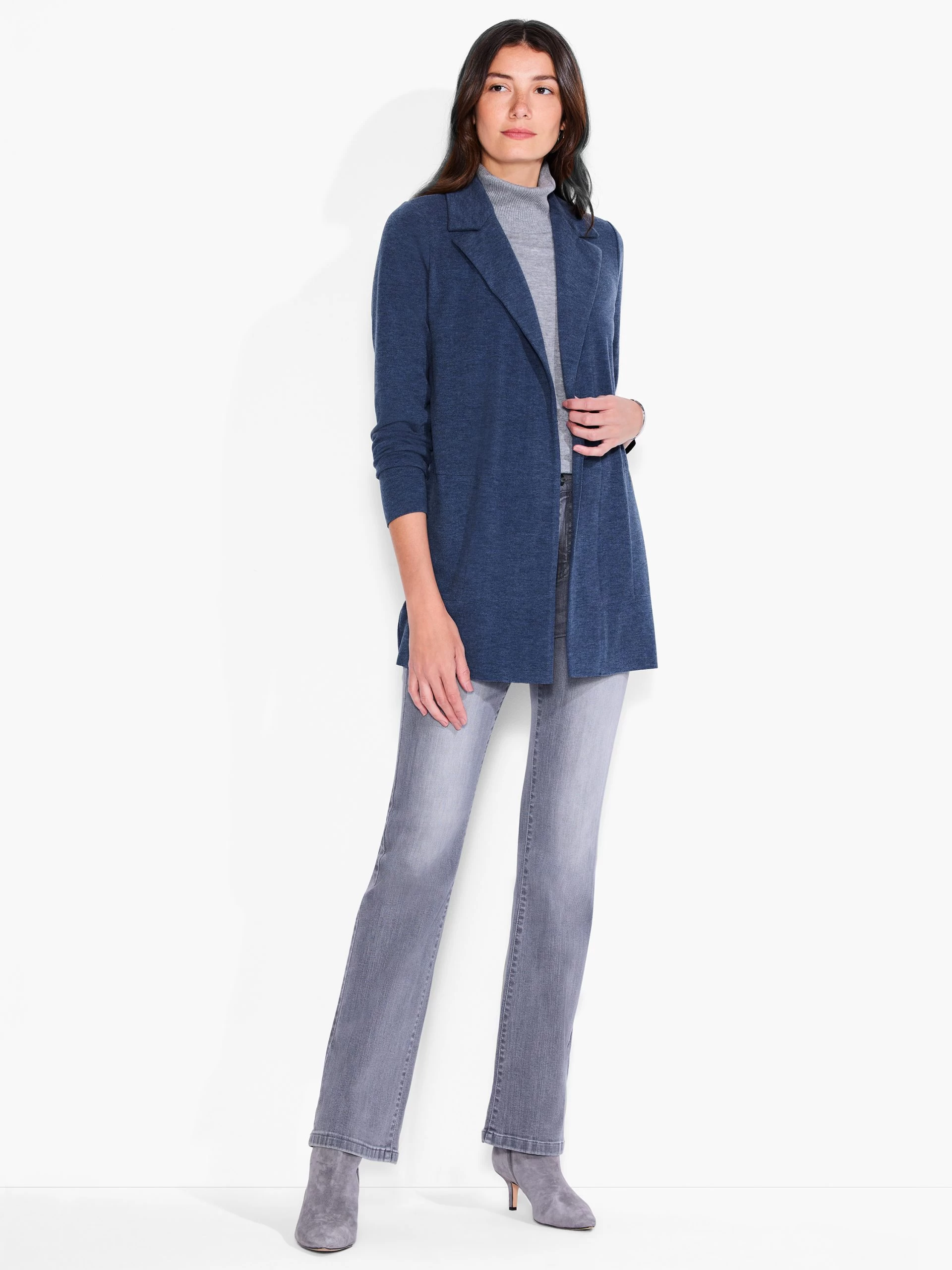 An essential midweight blazer, designed with a modern raw edging details to upgrade your look whether you’re dressing it up or keeping things casual. With an open front, notch collar, and a super fun detail on the back. Made from our All Day Comfort Knit construction, with just the right amount of drape and stretch.