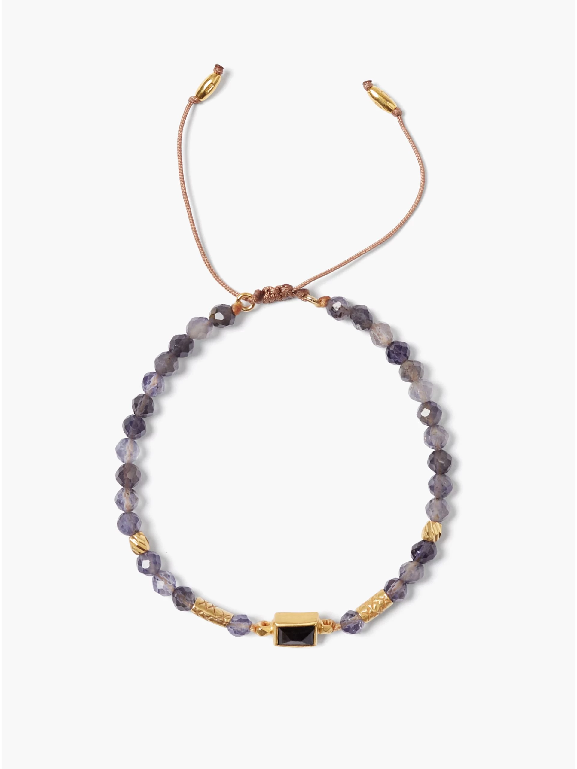 A simple silhouette you can build upon, this pull-tie bracelet features a row of rich iolite beads with a hypersthene pendant. Pairs perfectly with your favorite wraps and cuffs.