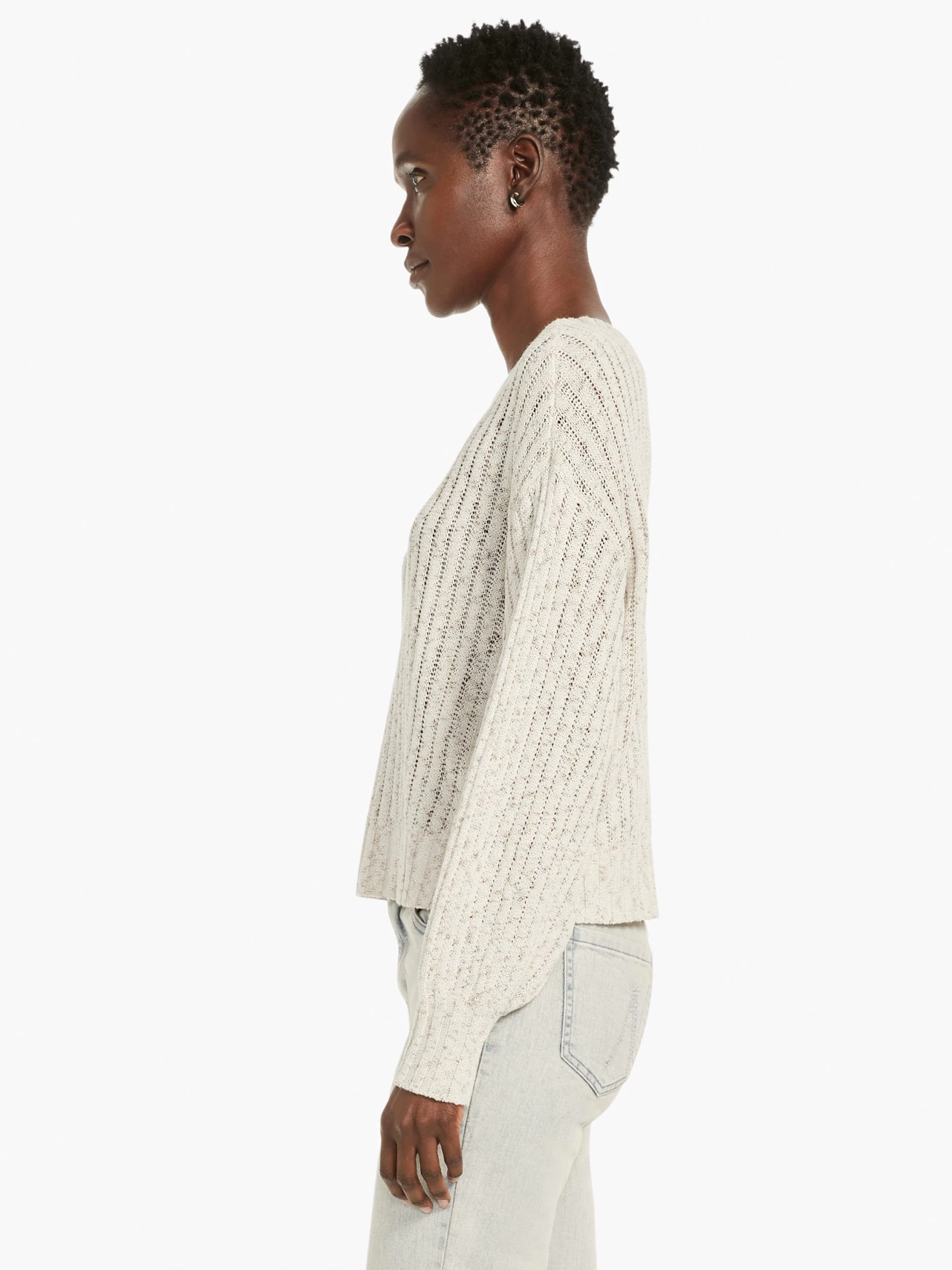 An artistically crafted textured sweater is sure to make its mark on any outfit. Featuring a unique cream slub yarn in a vertically textured stitch, this lightweight crew neck in our signature cotton blend proves that sweater season lasts all year. Designed for an easier fit with dropped shoulder bishop sleeves and a hem that sits at the hip. Mindfully Made with our “no waste knitwear” process.