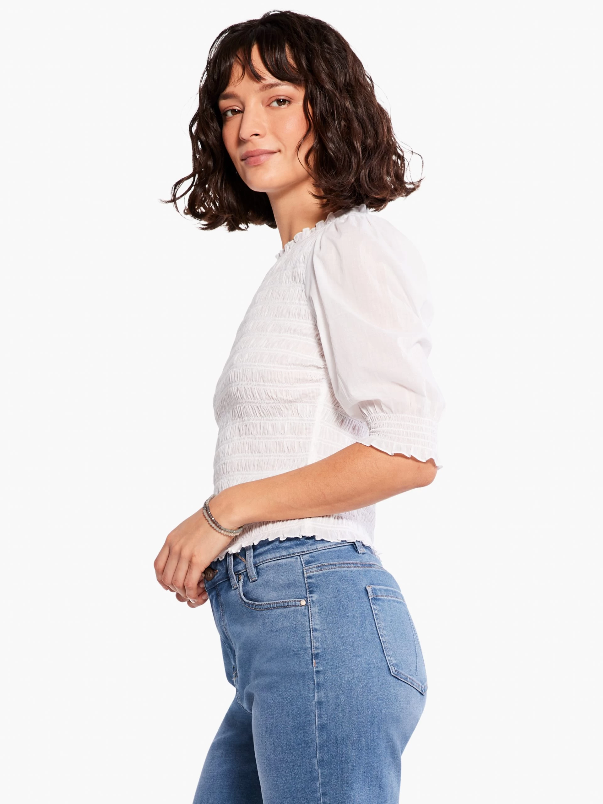 Cotton Lawn Smocked Top PAPER WHITE