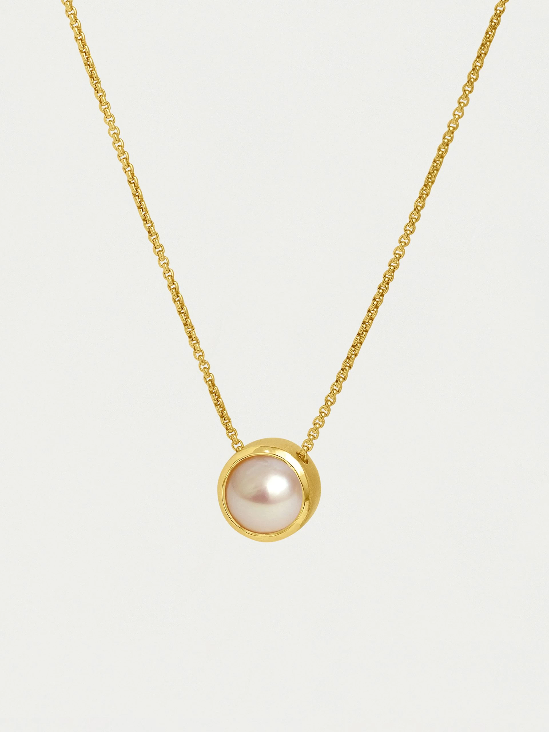 Inspired by Dean Davidson’s best-selling Signature Midi Knockout Studs, the Signature Knockout Pendant features a genuine pearl surrounded by a thin gold outline and suspended on a fluid, adjustable box chain.