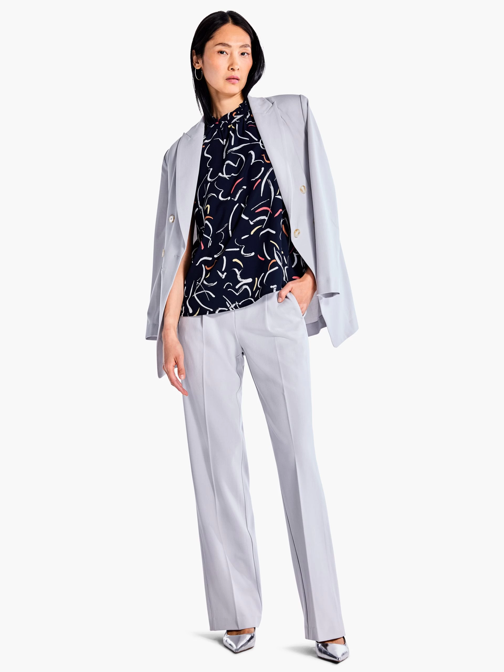 Don’t you wish your doodles were as useful as the dreamy Doodle Clouds tank? Inspired by the idle wanderings of our pen, this print adds some fun to the relaxed fit, high neck top silhouettes that are currently on-trend. The background is a deep indigo so it’s as comfortable with more elevated looks as it is with your casual styles and the ruffle collar features back keyhole design. Sits at the hip.