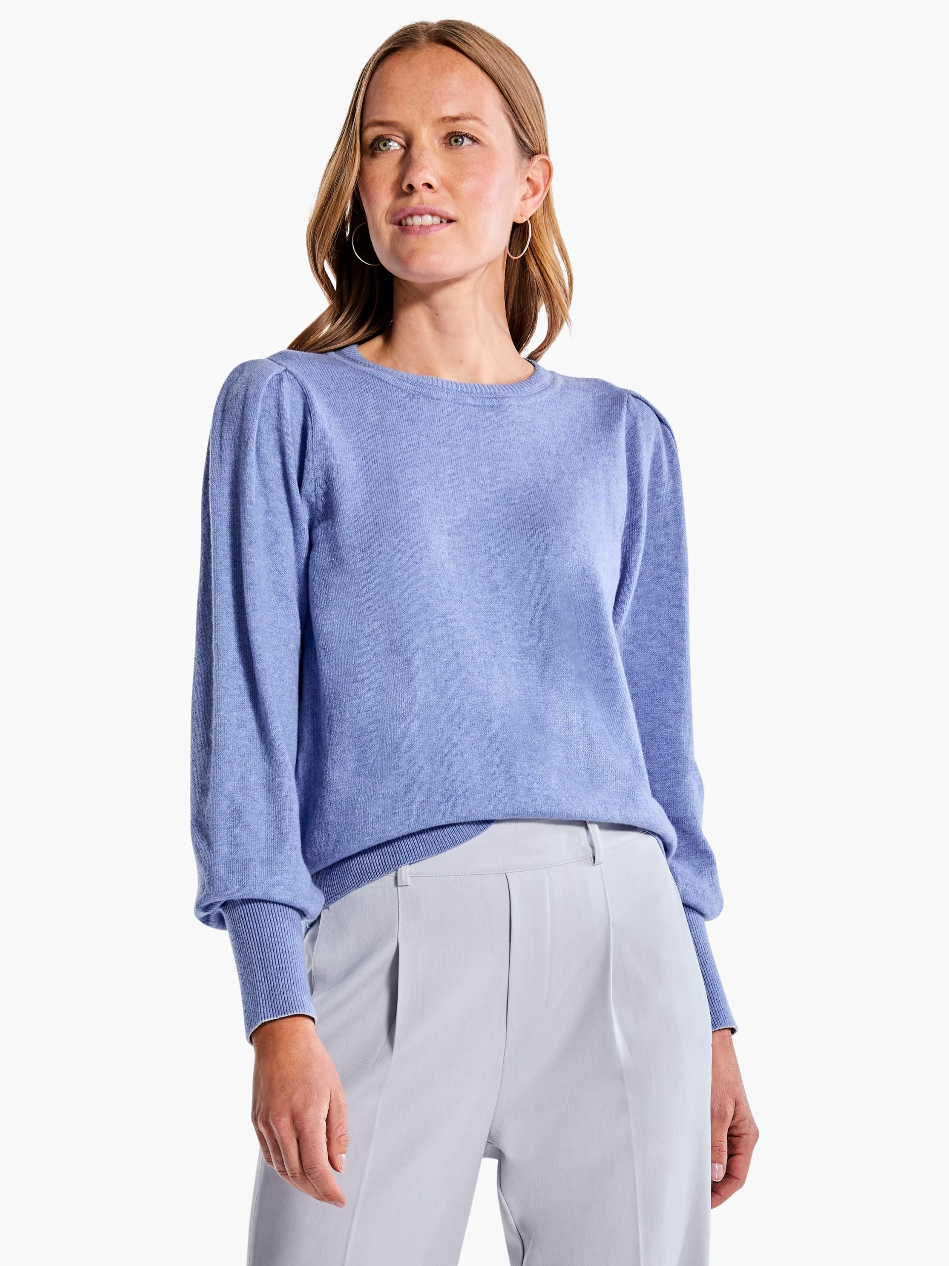 Trendproof with a twist. We started with a classic crewneck sweater silhouette, then added feminine twist thanks to the placed pleats at the sleeves. We made it from an easy lightweight blend, perfect for layering. With ribbing details along the collar and at the cuffs. Mindfully Made from fully fashioned knitwear in a process that creates minimal fabric waste. Designed to sit at the hip.