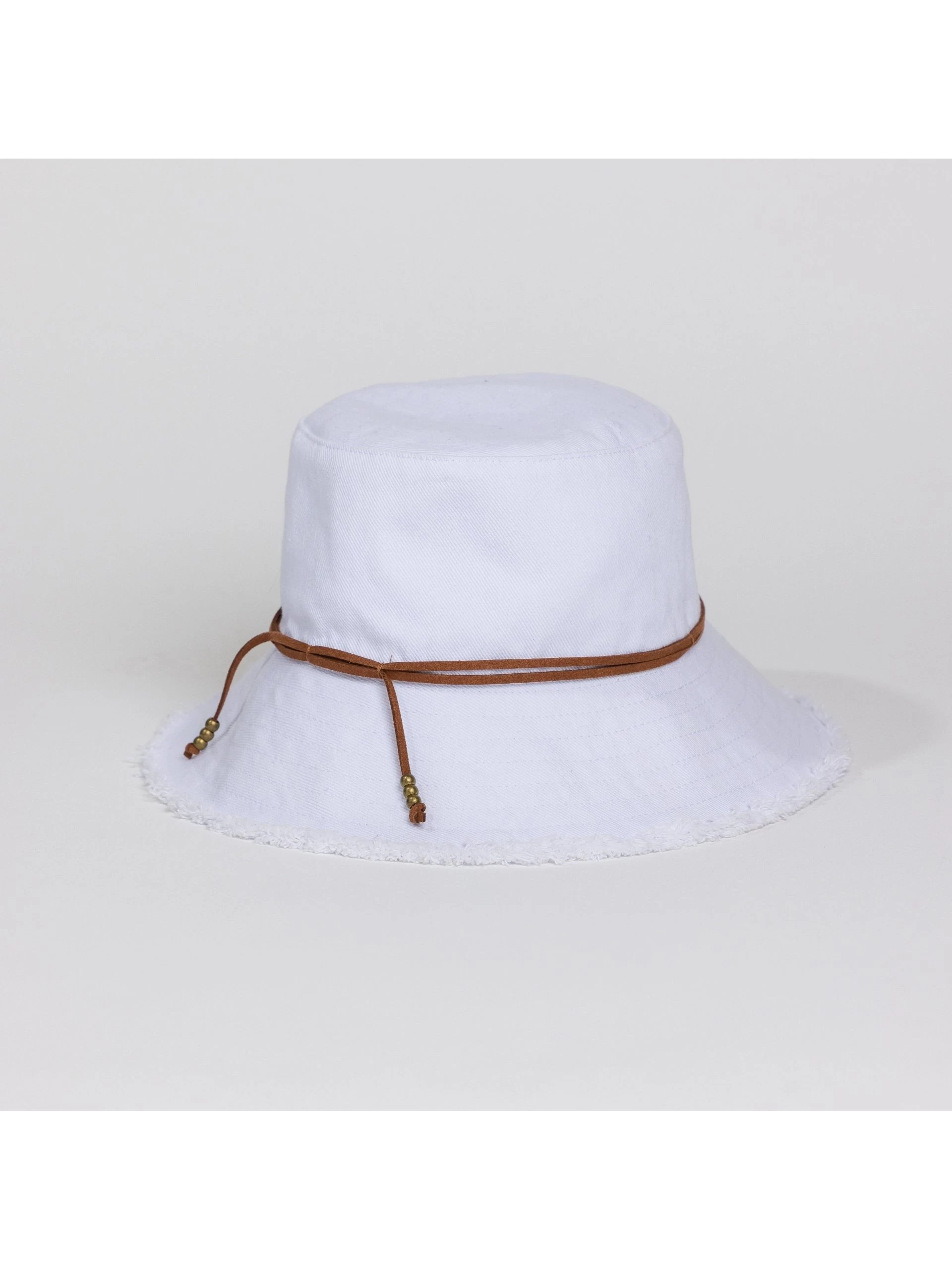 HAT ATTACK FRINGED BUCKET HAT WHITE