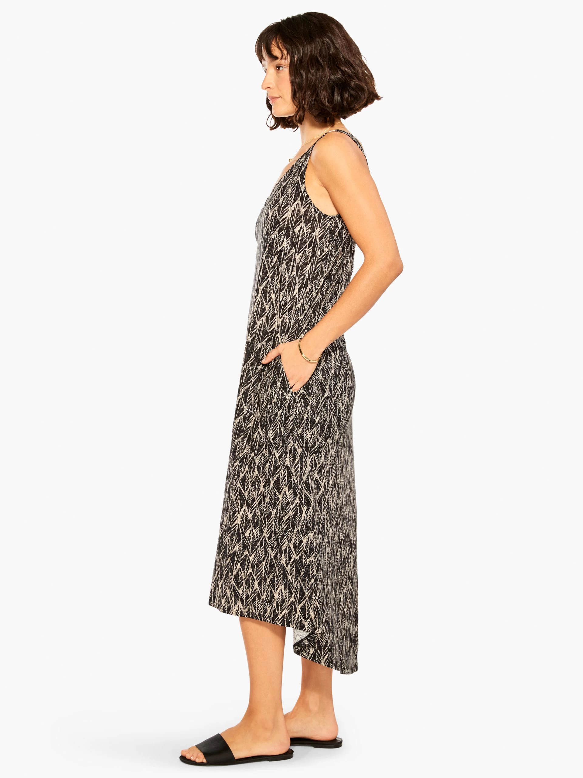 Our T-shirt dress of the season, no matter the season. An easy fitting A-line that falls below the knee, this head-to-toe print is made from our breezy linen modal blend that stays comfortable all day. Sleeveless and with a relaxed V-neck, perfect for layering underneath a sweater, cardigan, or blazer once the sun goes down or you step into aggressive air conditioning. With pockets!