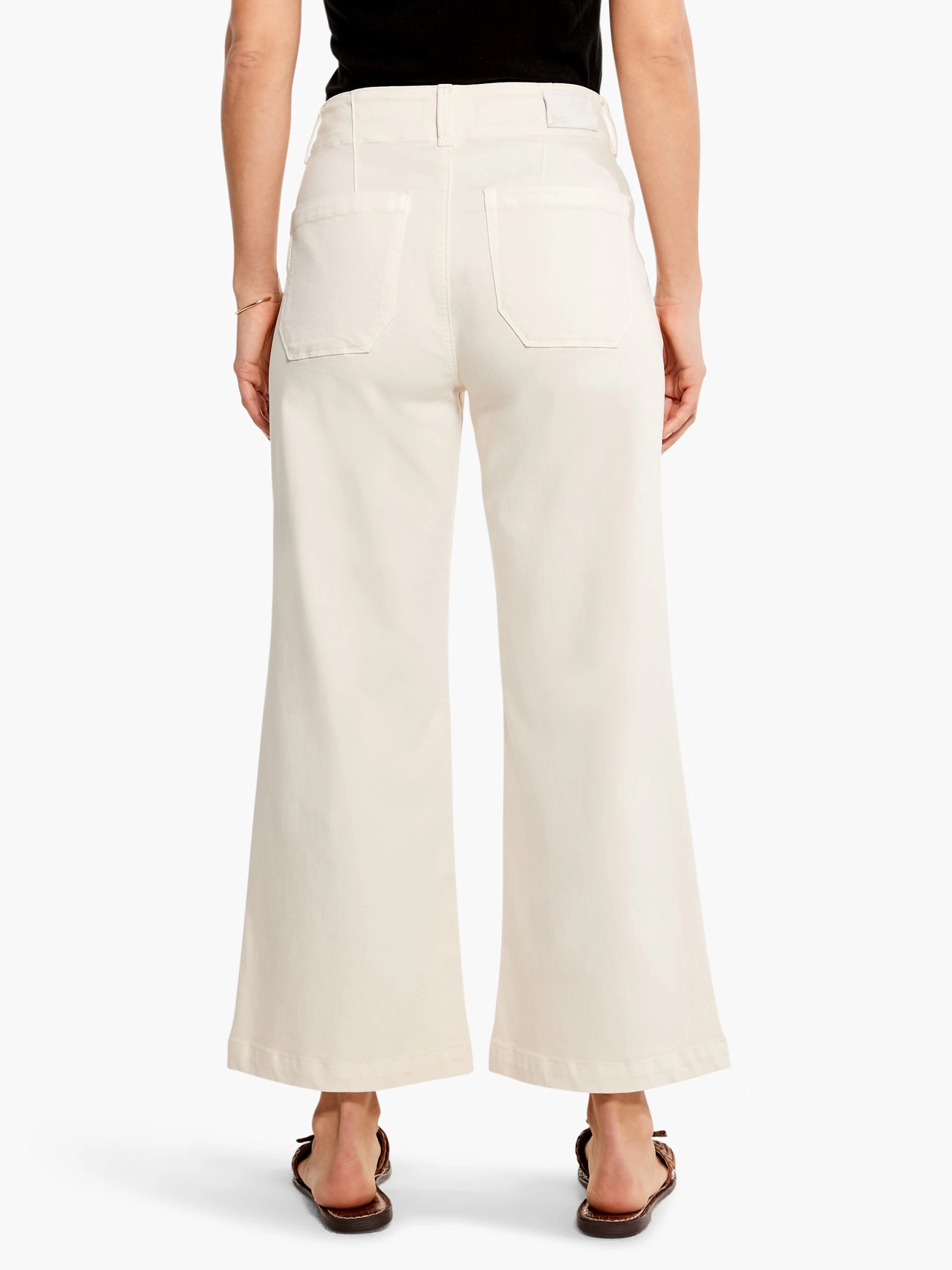The Brooklyn Crop is the perfect spring and summer style. This new high-waisted wide leg silhouette features a cropped silhouette, a wide waistband, a double button closure, front pleats, trouser pockets and a seam detail down the front. This effortlessly chic pair comes in a beautiful off-white shade in a super soft fabric with the perfect amount of stretch.