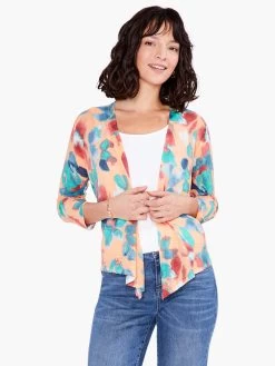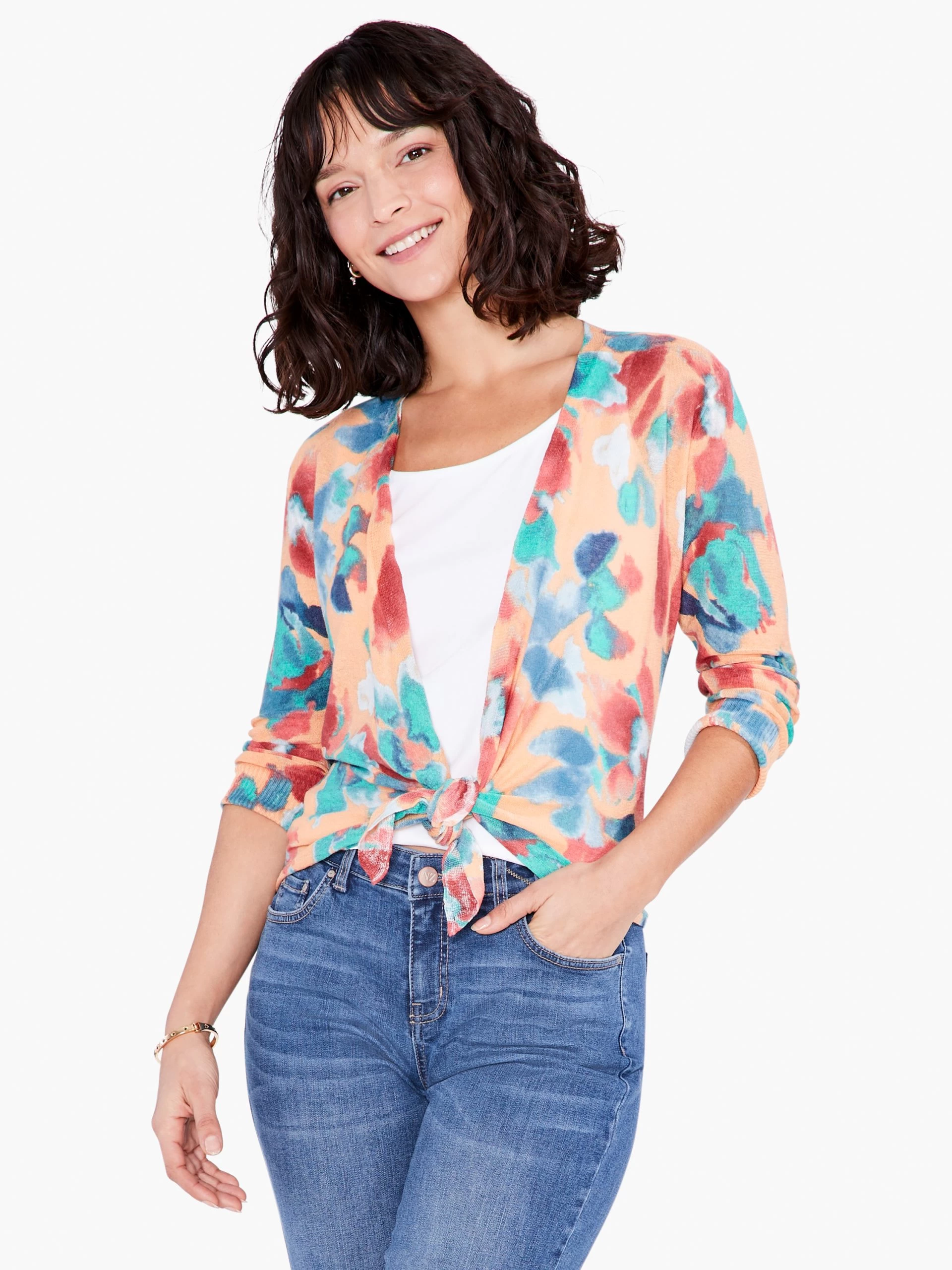 Our bestselling 4-way cardigan silhouette has never looked fresher thanks to this colorful new print. Wear this burst of tropical color tied, wrapped, twisted, or open. Mindfully Made from a lightweight and breathable linen blend with basic long sleeves. With a V-neck and a hem that’s designed to sit at the hip.