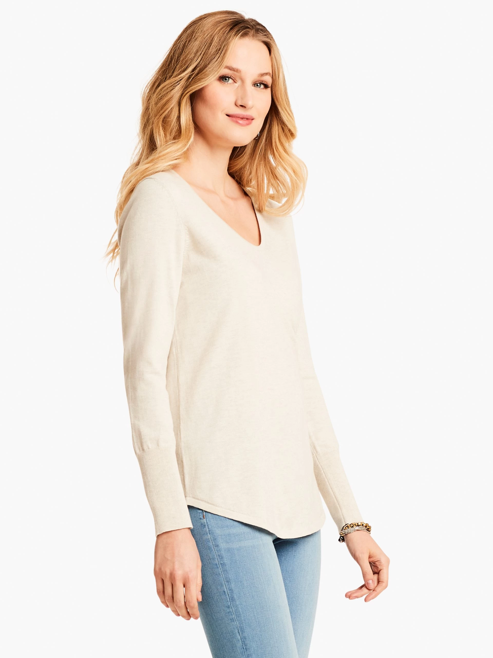 Vital. Classic. Essential. This is the perfect version of the classic V-neck sweater. Our signature lightweight knit offers unmatched comfort, breathability, and all-season versatility. As a top or as the quintessential layer and in fourteen colors (and counting!) it’s hard to stop at just one. A classic pullover and made with partially recycled materials, making it Mindfully Made!