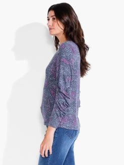 NZT Dotty Lines Short Sleeve Crew Assymetrical Tee BLUE MULTI